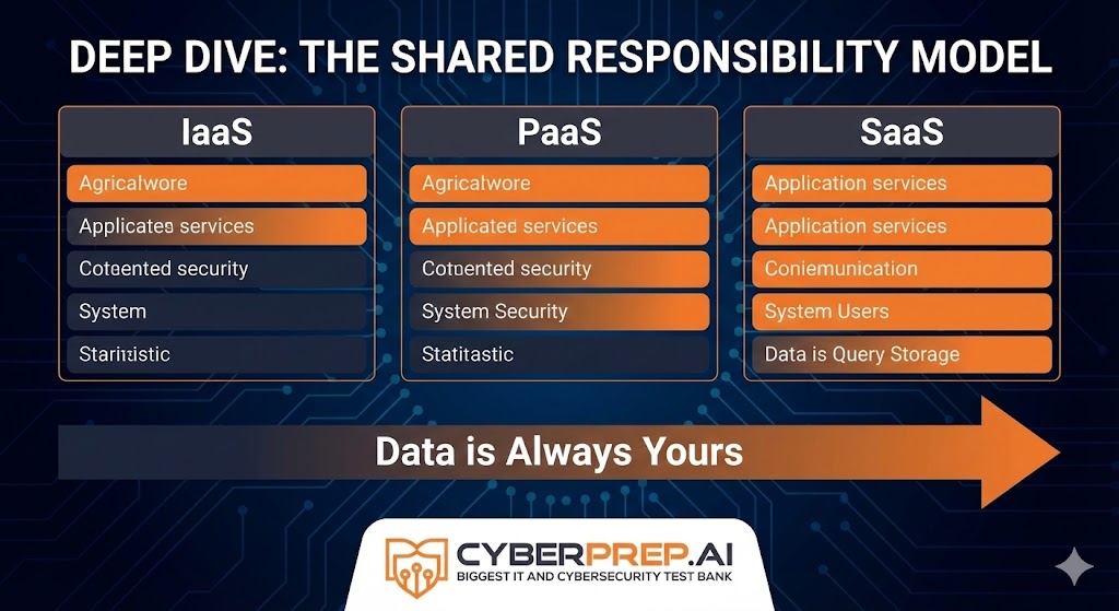 - Exam Tip: If a user sets their password to “password123” and gets hacked, that is YOUR fault. The provider secured the platform; you failed to secure the access.